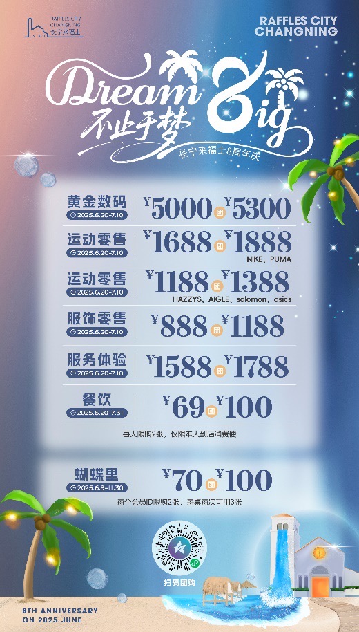 东方网记者王泳婷6月25日报道:夏日热浪来袭,申城市民无需远足即可开启海岛度假模式。近日,凯德集团在沪标杆综合体长宁来福士,以“Dream 8ig 不止于梦”为主题启动8周年庆典,通过沉浸式热带海岛场景营造、全业态焕新升级及多元社群活动,在中山公园商圈打造都市人触手可及的“城市尽兴岛屿”。这场持续至7月20日的夏日盛宴,正以椰风海韵的浪漫氛围,为沪上消费者带来耳目一新的商业社交体验。