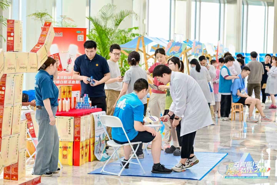 当跑者抵达69层,除了可一览张江今日美景,还可打卡AI科普互动活动、非遗摊位、科普摊位、医疗服务摊等内容,成为张江镇以党建引领推动劳育实践的生动缩影。孙桥社区“劳育”社团党建共建签约仪式也在活动现场举行,五家单位共建“组织共联、资源共享、平台共建”的协同育人机制。