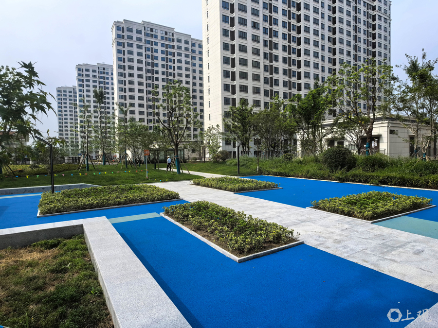 小区内部环境优美,栽种了40余种乔木、30余种灌木,搭配低矮的绿篱和草坪,高低层次分明。部分区域点缀了小花坛,为绿意盎然的小区环境又增添几抹绚丽的色彩。部分路段还设置了休闲长椅和照明路灯,供居民休憩小坐和方便夜间行走。小区预计6月底即可完成施工,今年年底结束验收。