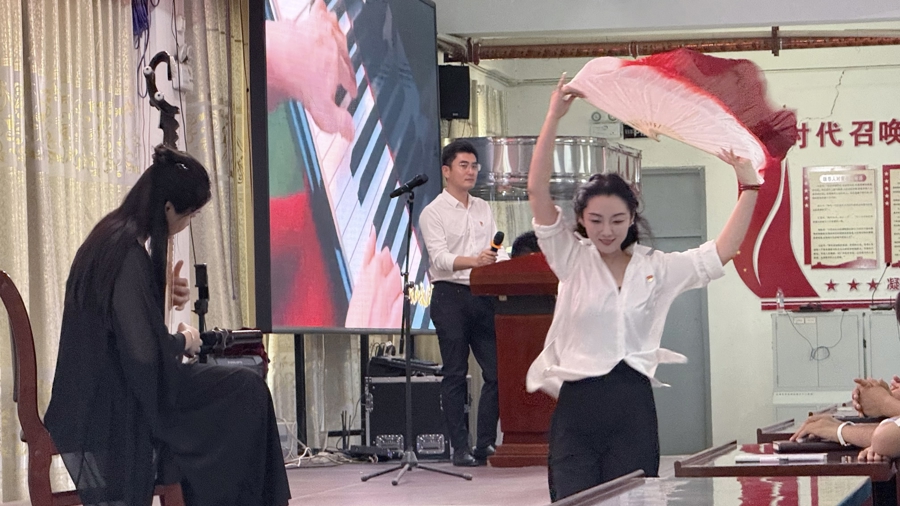 6月20日,小分队奔赴叶城县第三中学,开展《党旗下的誓言——从伟大建党精神中汲取奋进的力量》音乐特色专题党课,结合历史事件,精心编排内容,通过对红色经典音乐作品的详细介绍及生动演绎,让现场师生重温党的奋斗历程。“我们生在红旗下,长在春风里,目光所至,皆为华夏……”现场学生与党课主讲人云昊泓一起说出心声。