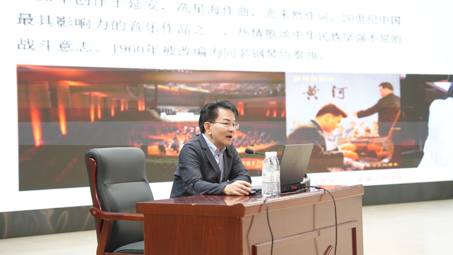 6月17日至19日,小分队分别走进巴楚县中等职业技术学校、莎车县喀什理工职业技术学院和泽普县第八中学开展红色音乐课堂活动。上海音乐出版社原社长、总编辑,上海市劳动模范费维耀作为特邀专家带来“聆听百年红色经典,提高音乐艺术素养”红色音乐讲座。讲座以“开天辟地、改天换地、翻天覆地、感天动地”四个主题“乐章”,对应党的四个历史时期,生动讲述中国共产党百年奋斗的光辉历程。