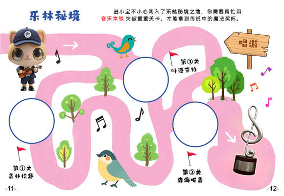 一年级小朋友踏入神秘的"乐林秘境",在"林音拾趣"关卡抽取单音,瞬间变身"小小歌唱家"放声欢唱;"叶语节拍"里,他们用拍手跺脚敲响自然节奏,仿佛树叶在跟着起舞;"森海听音"中,经典童谣旋律响起,考验着小探险家们的听音识曲本领,闯过三关就能捧起传说中的魔法奖杯!