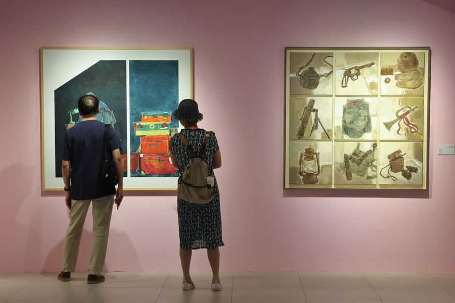 今年是中国人民抗日战争暨世界反法西斯战争胜利80周年,不少创作者也用艺术语言唤醒人们对那段峥嵘岁月的记忆。赵惊树的油画《锈色长歌》,以九件红军老物件为载体,搭建过去与当下的情感桥梁。画面上,九宫格里既有水壶、军服,也有喇叭、灯、手枪等。“我通过红军各种不同的物件立体呈现他们工作生活的状况,让观众睹物思人,了解战争的残酷,不忘那段烽火岁月。”为了创作,在徐汇区文化单位工作的赵惊树,多次去上海历史博物馆参观、拍摄这些老物件。