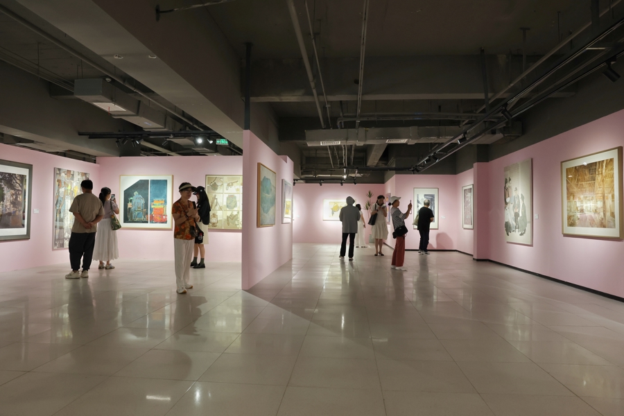展出的美术作品,全方位展现了长三角群文美术创作的整体面貌。既表现都市人文景观和美好生活,也承载江南乡土情怀的童年记忆;既展现当下大国重器,也呈现先辈浴血留下的精神遗产;既有传统视觉表达,也有新视觉、新手段、新科技表现。参展作品中,不少创作者运用了数字艺术创作,使用AI辅助构思绘画草图,不断探索创作的新路径。“AI等新科技为绘画创作带来更多可能性,在创作中如何将其作为辅助手段,有机融入创作者的情感与思考,进而实现作品艺术价值的提升,展现更丰富的艺术表现力,这些新问题值得业界深入思考和探讨。”上海市美术家协会驻会副主席丁设说。