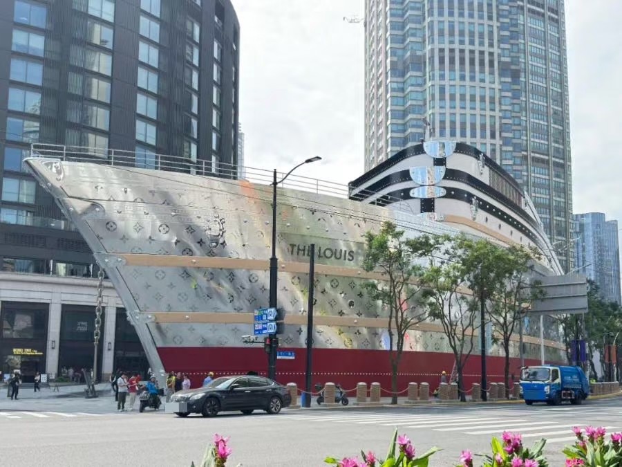 连绵阴雨后,太阳甫一露头,路易号“巨轮”悄然泊入上海闹市地标商圈,与漫天熔金一同“框”入都市即景。