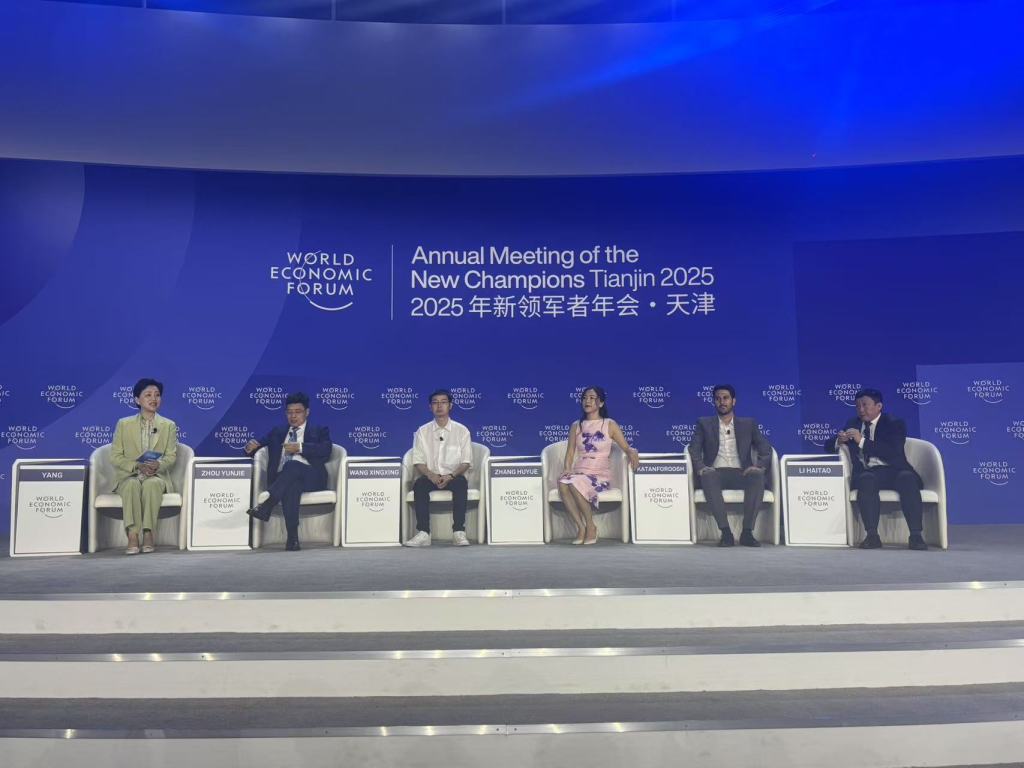 左三为王兴兴。夏季达沃斯现场。澎湃新闻记者 邵冰燕 图