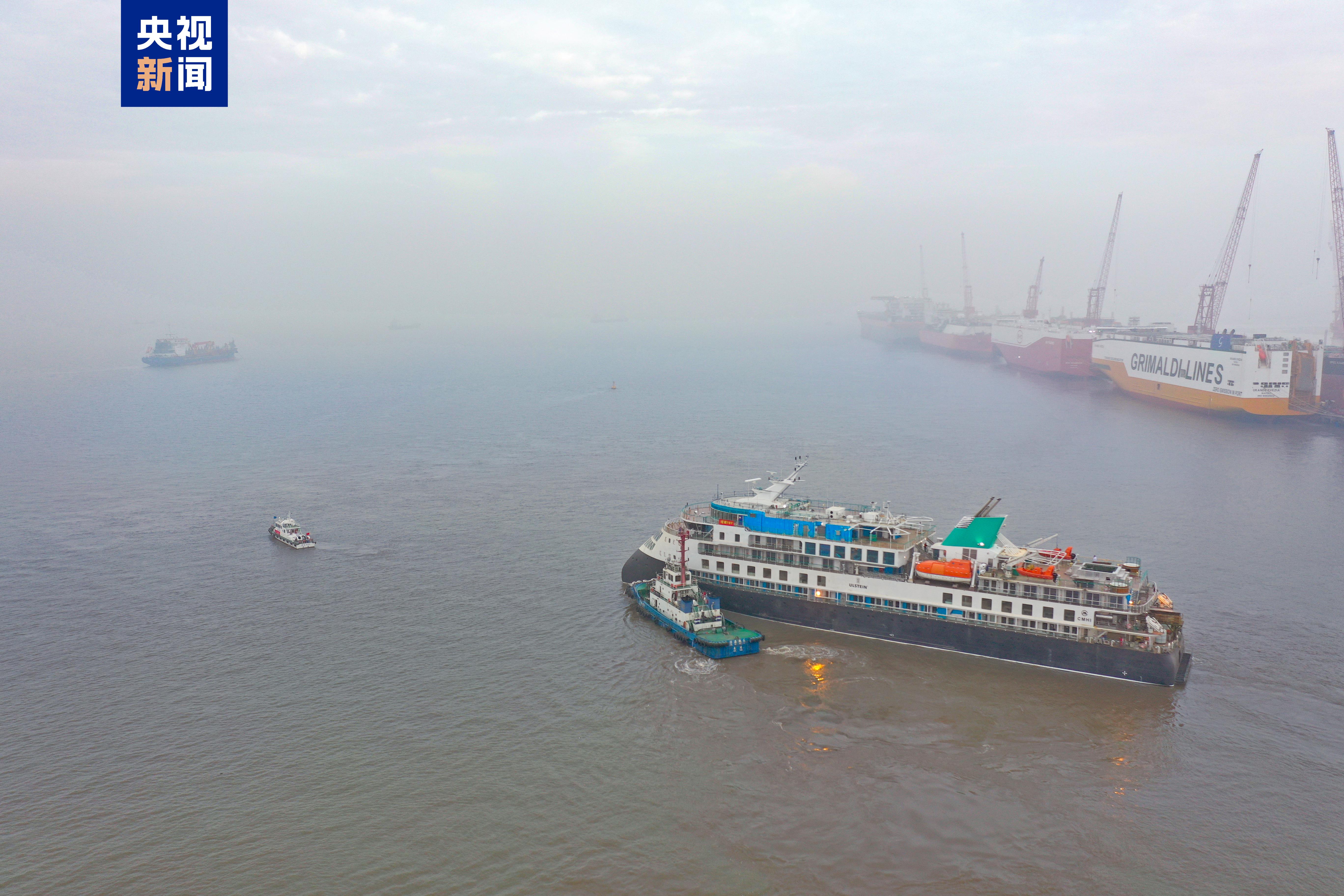 6月26日6时许,今年以来长江南通段出江试航的首艘极地探险邮轮成功出江。