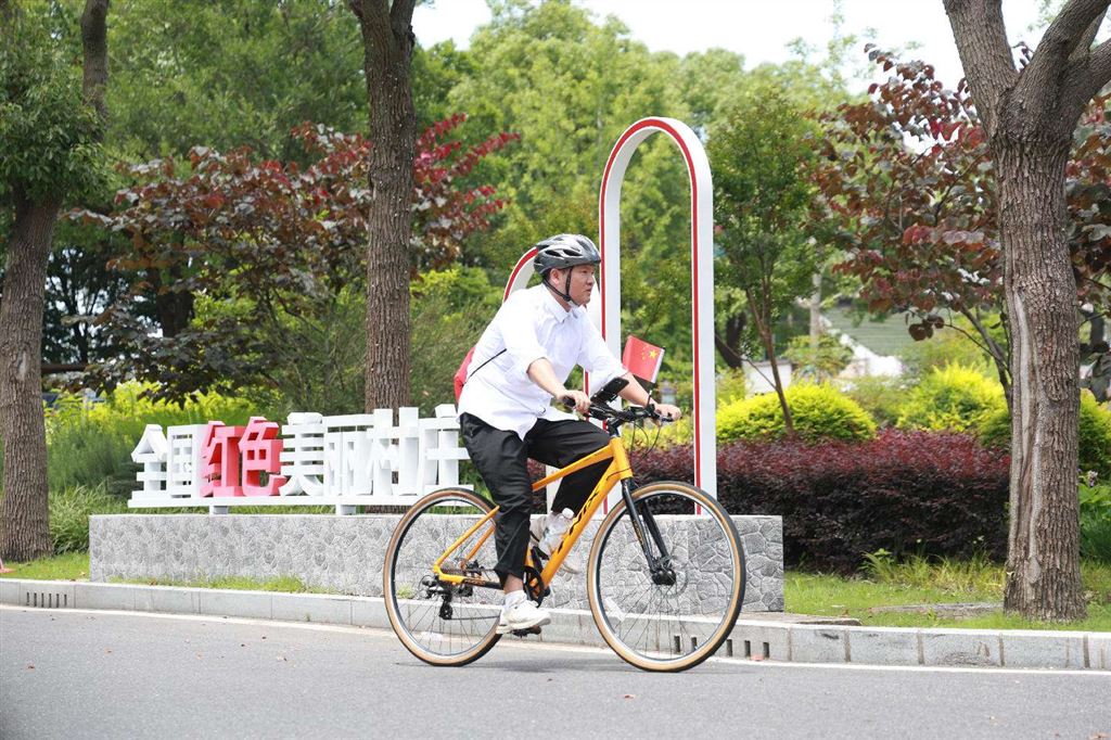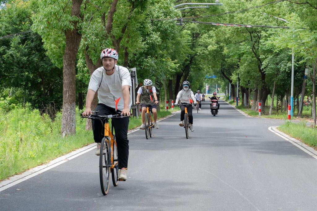 发令枪响后,大家在领队的带领下沿着两地红色印迹的起源地金山区农建村“初心馆”、独山港镇金沙村“红色转角湾”开展了全长约9.5公里的红色骑行,在重走红色路线的过程中重温历史、回望初心。