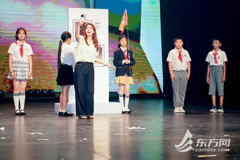 据了解,此次活动是上海市青少年活动中心与徐汇区向阳小学跨学科课程合作的成果。课程以项目化学习方式开展,以“毕业季,如何向学校献礼”为驱动问题,围绕思政育人,融合校内外教育资源,构建多维课程体系。通过“剧本解析课+寻访实践课+艺术/科技鉴赏课”的框架,实现知识与价值观的传递。