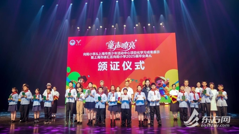 东方网记者刘轶琳6月26日报道:今天下午,宛平剧院内座无虚席,超900名观众共同见证了“童声嘹亮”向阳小学&上海市青少年活动中心项目化学习成果展示活动暨向阳小学2025届毕业典礼的精彩上演。350名学生用舞台剧与合唱交织的方式,将校史故事与学习成果生动呈现。