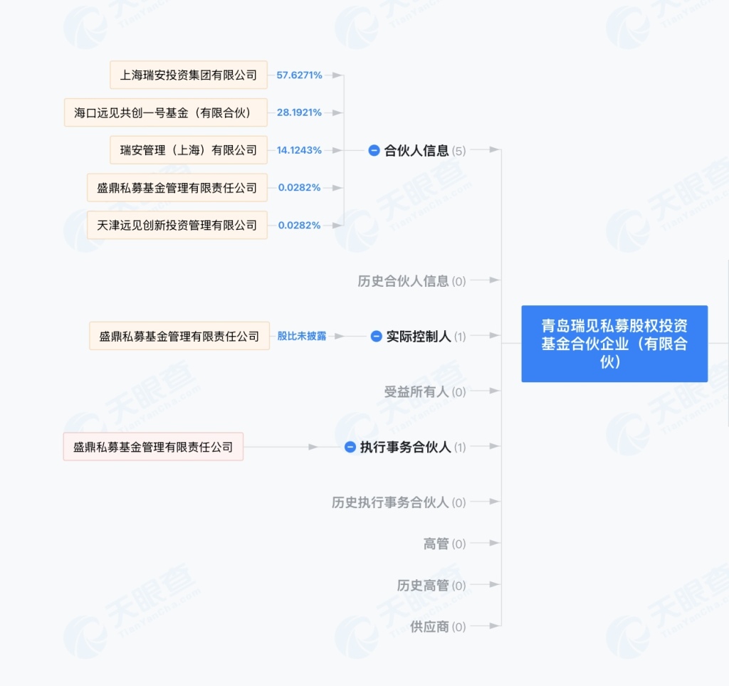 值得关注的是,前述“基金”为青岛瑞见私募股权投资基金合伙企业(下称“青岛瑞见私募”)。据工商资料查询平台天眼查信息显示,青岛瑞见私募成立日期为5月20日,出资额约35.4亿元。