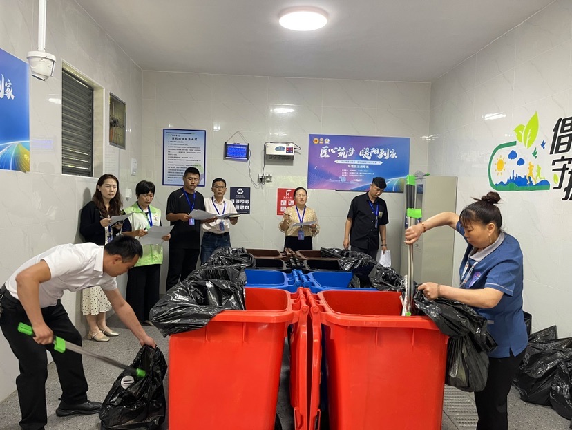 在现场分拣垃圾比拼现场,保洁员将眼力、脑力、手速都调至最强档,准确又迅速地完成垃圾分类,分拣完还不忘仔细清理垃圾箱房,时刻确保小区环境的卫生整洁。