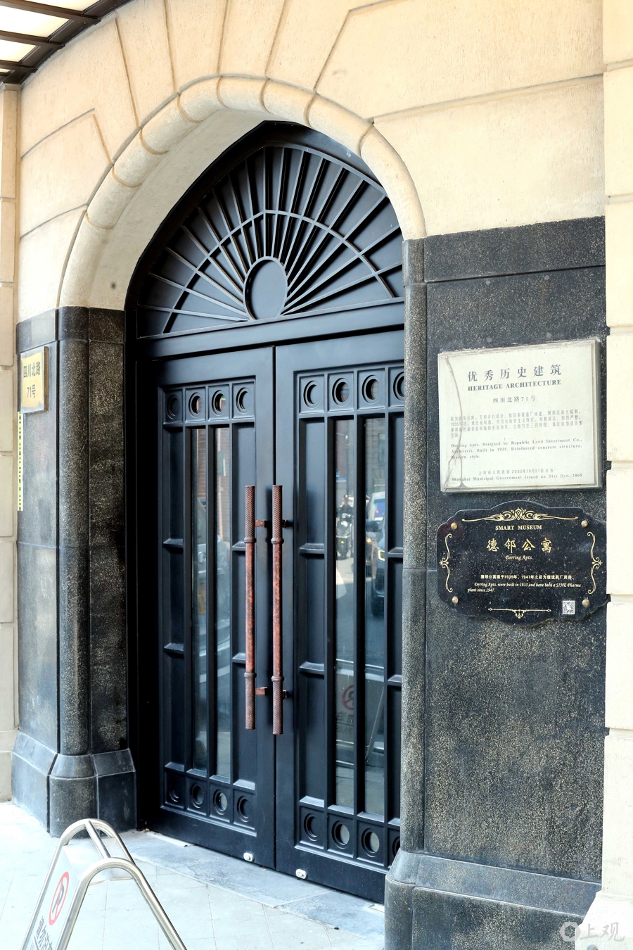 德邻公寓东南入口,按照设计图纸和历史照片恢复入口门头。