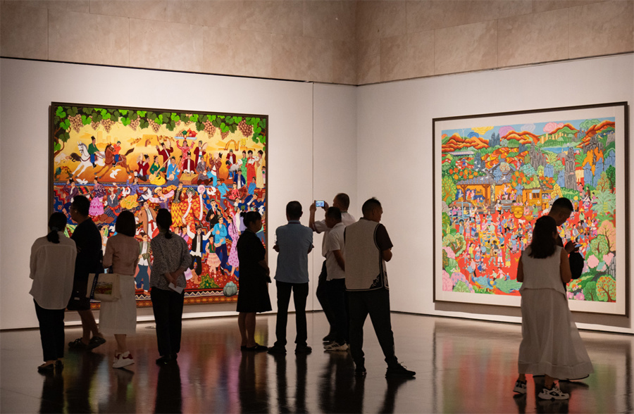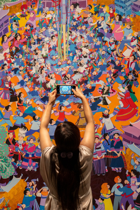 以中国乡土文化精神为核心,通过农民画展现新时代城乡生产生活、民俗风情及自然风貌,传承农耕文明的集体记忆,记录乡土社会的时代变迁。由中国美术家协会、上海市文化和旅游局、上海市文学艺术界联合会、金山区委、区政府、北京大学艺术学院共同主办的首届中国乡土绘画(农民画)作品展览,今日起至8月24日在中华艺术宫(上海美术馆)向公众开放,展出来自全国各地的农民画作品,展示这一民间艺术的独特魅力。