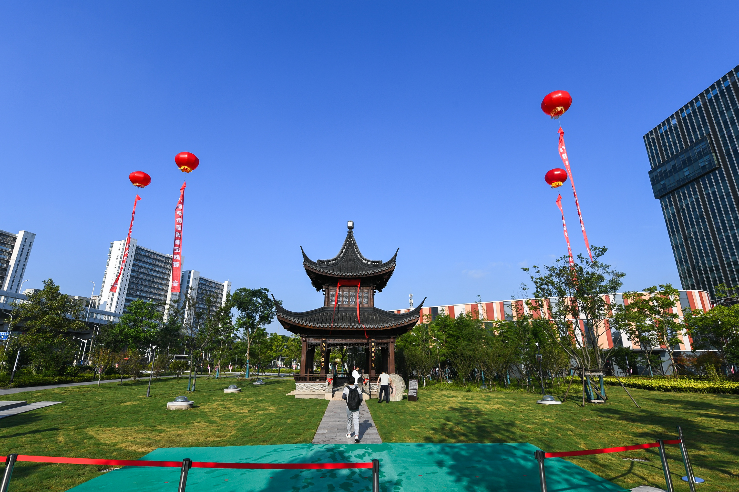 2025年6月28日,上海松江区九里亭街道的新地标——新九里亭正式落成。澎湃新闻记者 徐祯曜 摄