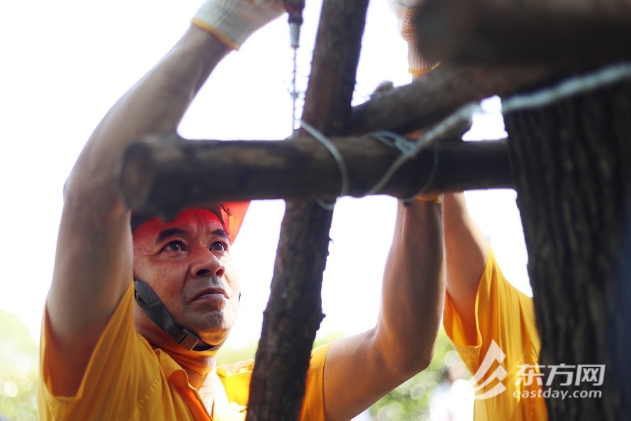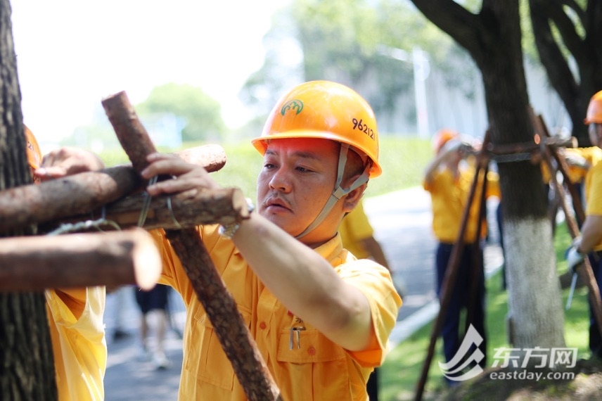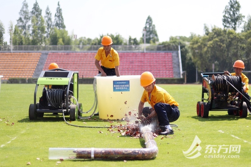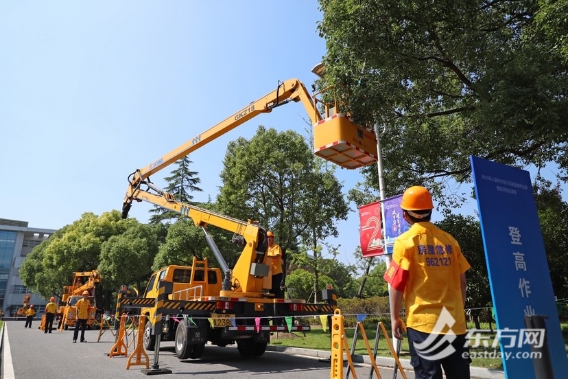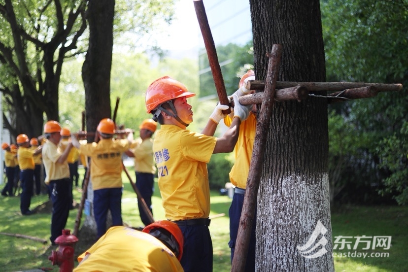 东方网记者柏可林6月28日报道:今天上午,上海再度发布高温黄色预警信号。在上海建设管理职业技术学院青浦校区,一场防汛防台演练正在如火如荼地举行。为提高住宅小区房屋维修在灾害性天气来临时的应急响应能力和处置能力,全市各房屋维修应急人员接受了一场“模拟考”。