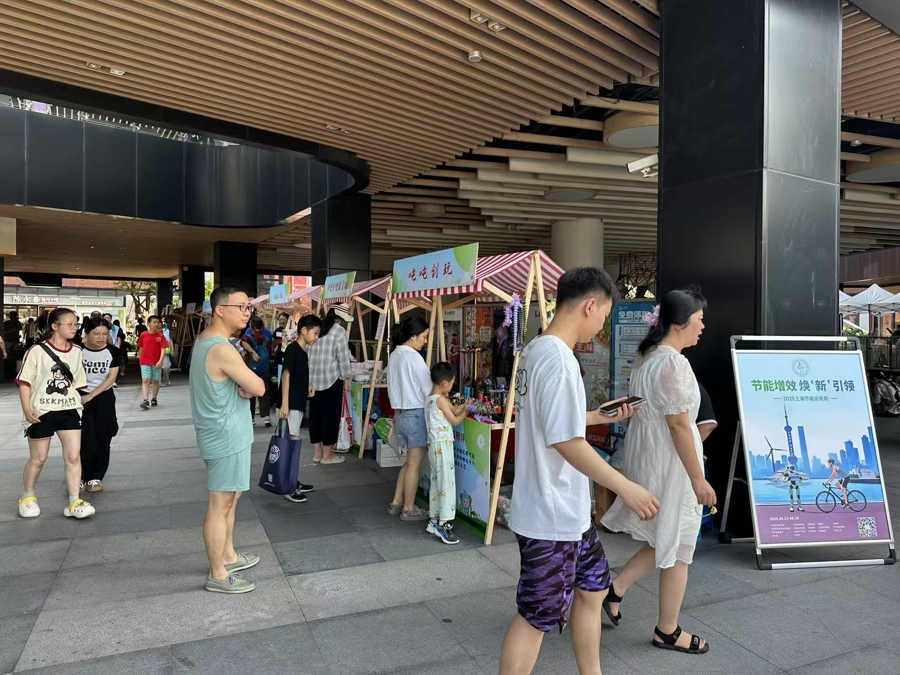 2025年东明路街道节能宣传周主题活动“美丽东明,低碳节能我先行”低碳游园会今天在新达汇.三林广场上火热开展,社区居民、周边商户共创,通过“展览+市集+科普+体验”的多元模式,传达了充满生活气息的低碳节能做法和态度,让低碳节能的理念在欢声笑语中落地生根。