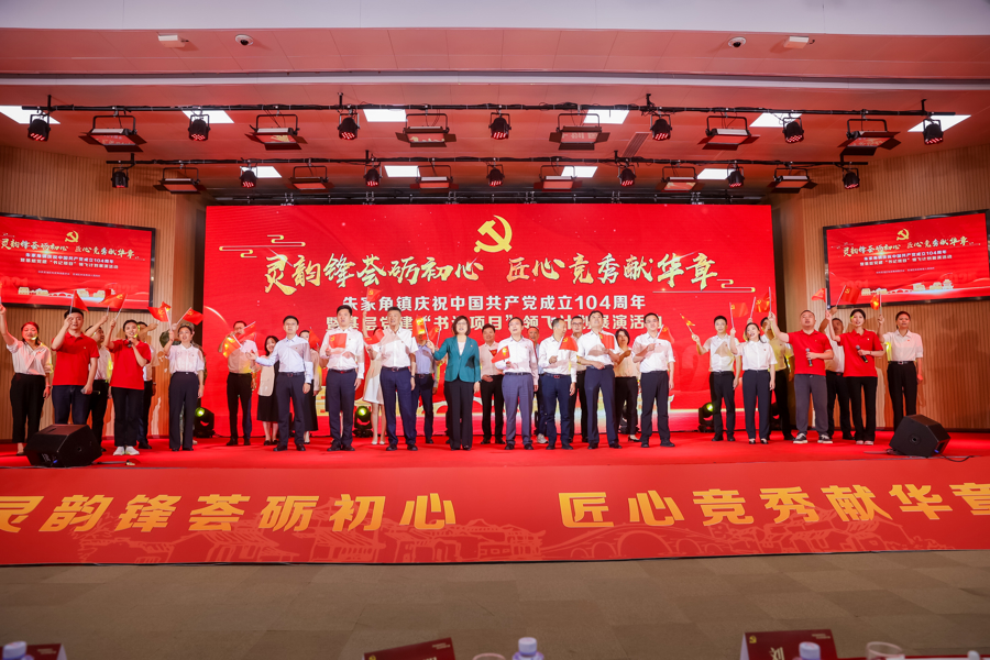 6月28日,朱家角镇庆祝中国共产党成立104周年暨基层党建“书记项目”领飞计划展演活动于长三角一体化示范区(上海)金融产业园举行,回顾党的奋斗历程,集中展示在基层治理、乡村振兴、文化繁荣、应急处突等各个方面所取得的扎实成效和生动实践。
