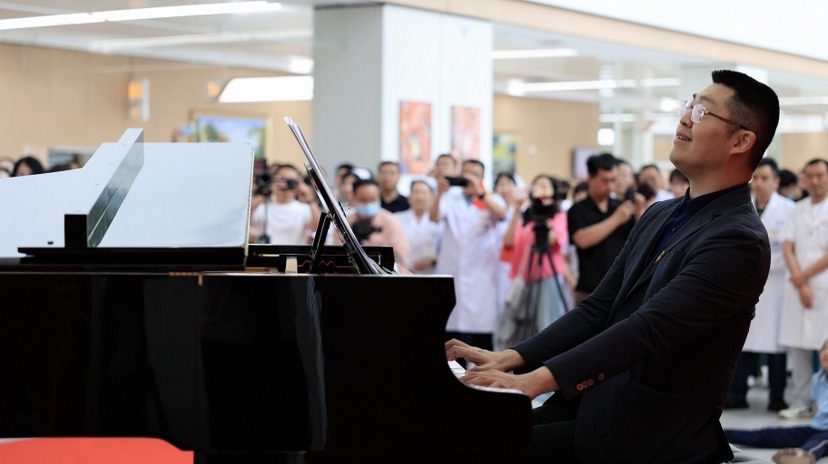 6月25日晚,刚抵达酒泉的音乐家们来到始建于东晋的酒泉鼓楼前演出。《上海爱乐号角》《云宫迅音》《黄土高坡》等曲目轮番上演,龚天鹏亲自改编指挥,热情的当地观众跟着旋律合唱,演出结束后仍意犹未尽。 6月26日清晨,上海市第一人民医院酒泉医院大厅里,弦乐四重奏悠扬响起。《弹起我心爱的土琵琶》《在希望的田野上》等乐曲,尤其是加演的《我和我的祖国》,引发医护人员和患者的大合唱。自2023年成为国家区域医疗中心以来,上海持续向酒泉输送医疗资源。上海市第一人民医院酒泉医院执行院长高臻表示:“这是医院首次举办现场音乐会,音乐为医患带来了心灵抚慰。”