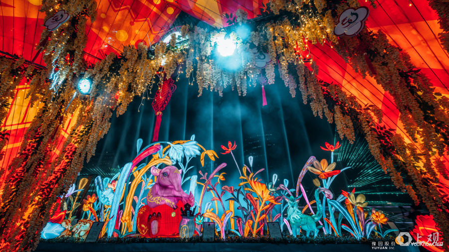 此番出海泰国,豫园灯会继续以《山海经》为蓝本打造的IP“山海奇豫记”进行延展,在设计中更为注重融入泰国本土特色,将《山海经》中各种古老且生动的中国传统文化元素与泰国元素相结合,构建出了一个既神秘、绚烂又充满烟火气的大型户外沉浸式体验场景。