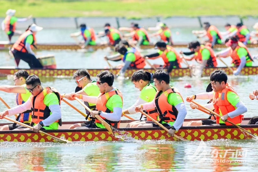 东方网记者王珂然报道:6月29日,2025年上海城市业余联赛第二十届世界著名在华企业健身大赛“中智先锋杯”龙舟赛在上海市水上运动中心开桨。