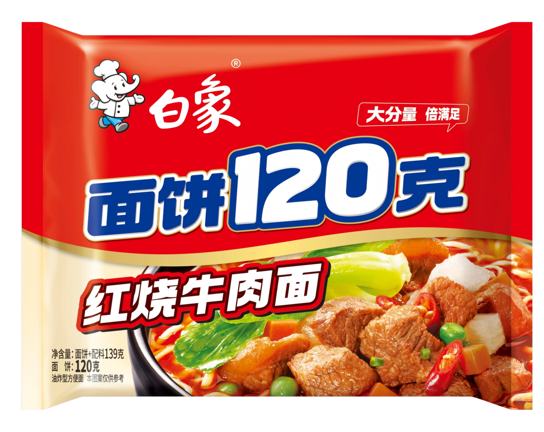 6月29日,记者获悉,白象食品在行业内率先推出以面饼克重命名的大分量方便面产品——白象“面饼120克”,并已在线上和线下渠道开售。