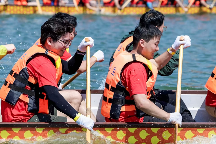锣鼓声起、水花飞溅,白领青年热血赛龙舟