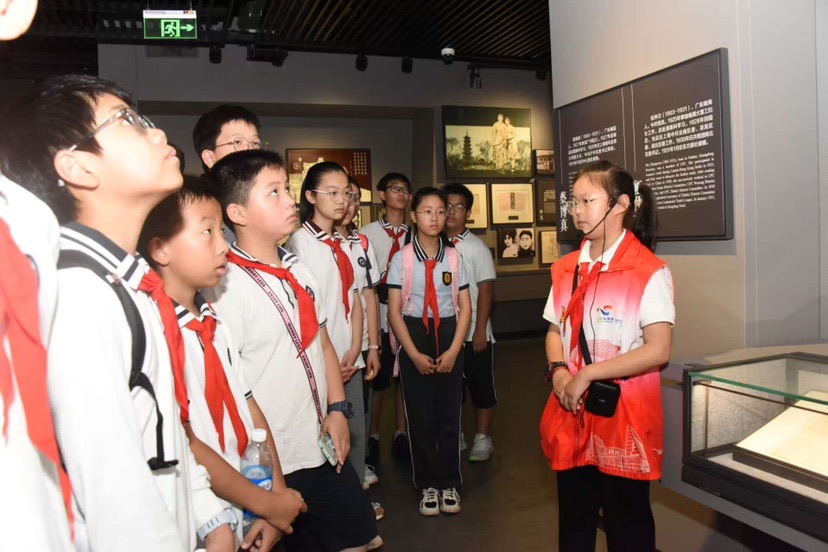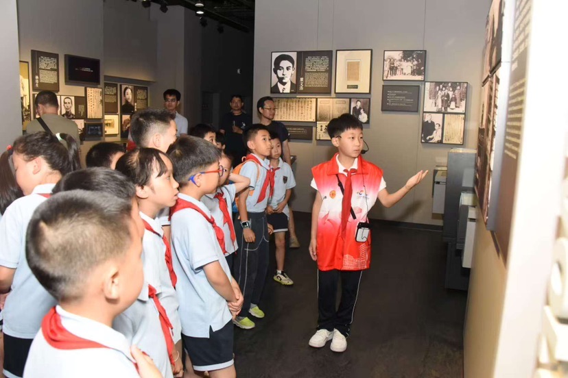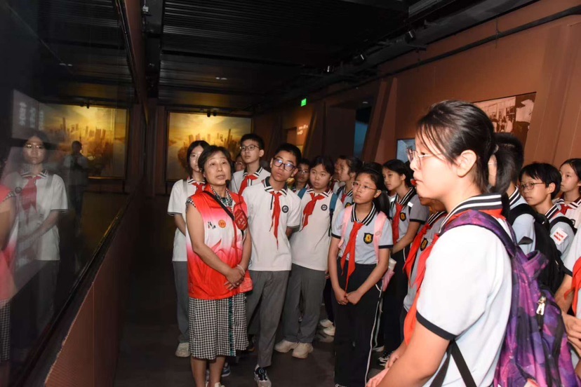 活动首批观众是华理附小的同学们,该校还精心组织了 10 名学生讲解员参与志愿讲解。此前,这些小讲解员接受了劳模志愿者的专业培训,并开展了内部考核和实战演练,积累了一定的讲解经验。然而,面对正式的对外讲解任务,这依旧是不小的挑战。华理附小三年级何艾闻同学表示“第一次对外正式讲解很紧张,好在有劳模和学生志愿者前辈的帮忙,顺利完成了讲解任务,这次讲解也让我感受到了劳模精神,从红色工运历史中汲取力量,特别有意义。”