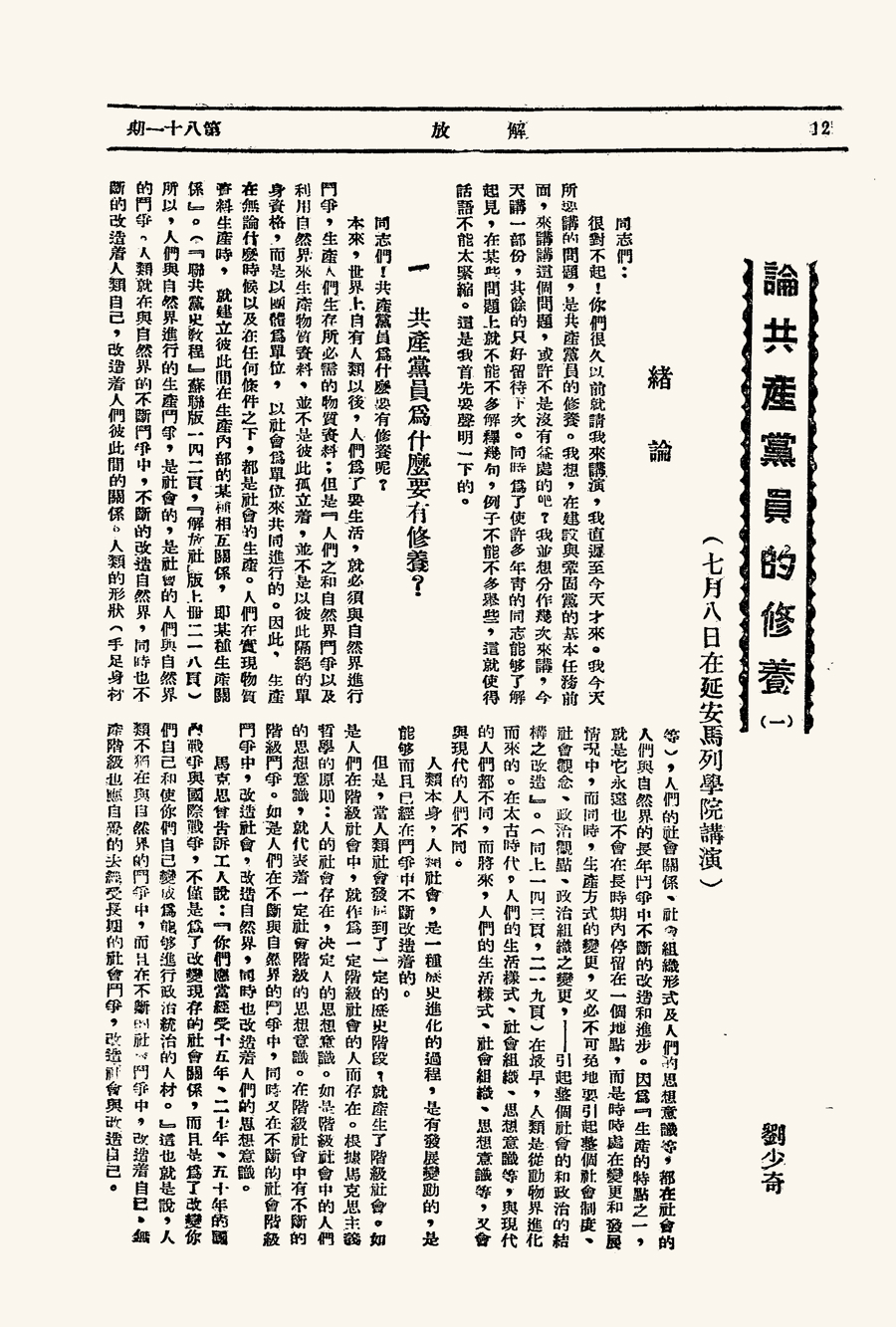 刘少奇所著《论共产党员的修养》