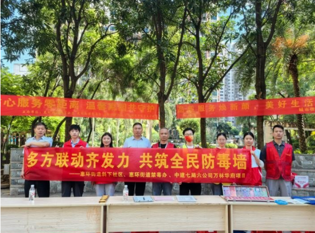 中建七局六公司万林华府项目联合属地单位开展“多方联动齐发力,共筑全民防毒墙”禁毒宣传活动