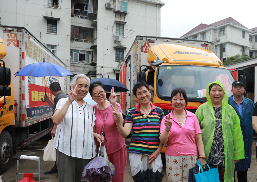 蕃瓜弄项目搬迁,居民们站在搬家车前开心合影。
