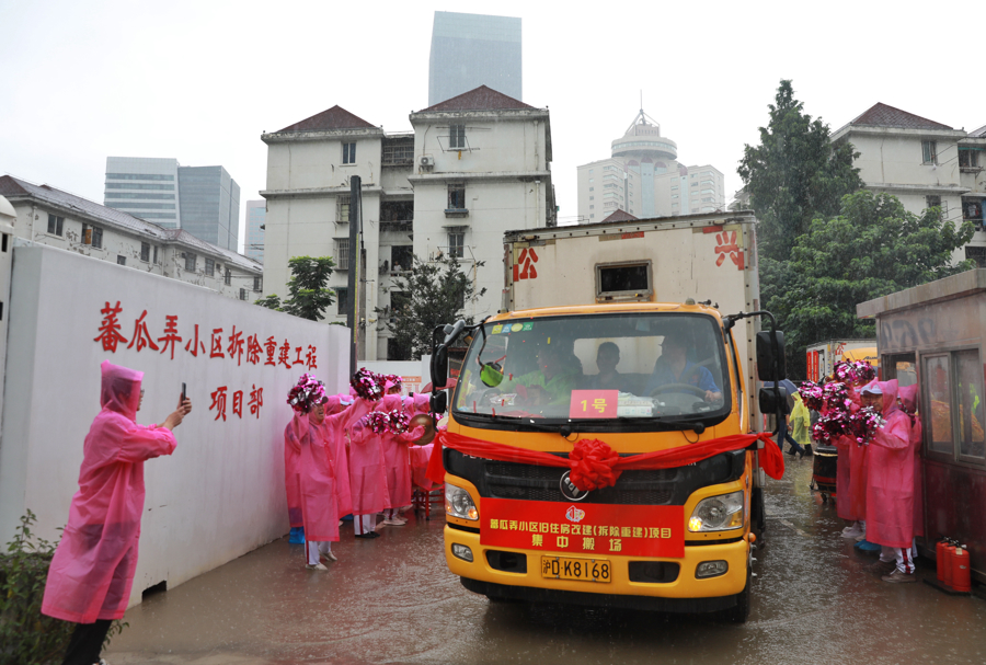 搬家车在欢送队伍中驶离蕃瓜弄。