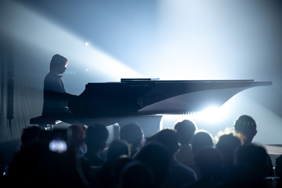 音乐会的核心是宋思衡原创的《来自地球的钢琴诗》第二号。12首作品被精心编排成“启航”“危机”“新生”三个乐章,讲述人类文明最后一日的星际穿越。舞台上,那架从意大利远道而来的法奇奥里“爱琴-海”定制钢琴尤为夺目——其海浪般的曲线轮廓,在蓝光映照下宛如飞船的驾驶控制台。