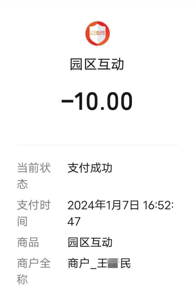 张先生提供的付款记录显示,2024年1月7日上午9点多,其支付10元购票后,显示收款商户全称为“平顶山市园林绿化工程有限责任公司”。而同日下午4点多,支付10元购票后,显示商户全称为“商户王某民”。