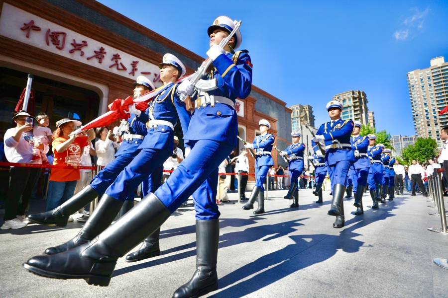 夏日炙热的阳光洒满兴业路,中共一大纪念馆前早已人影攒动。七月的第一天,人们从四面八方汇聚于此,用一场庄严而热烈的仪式,庆祝中国共产党成立104周年。