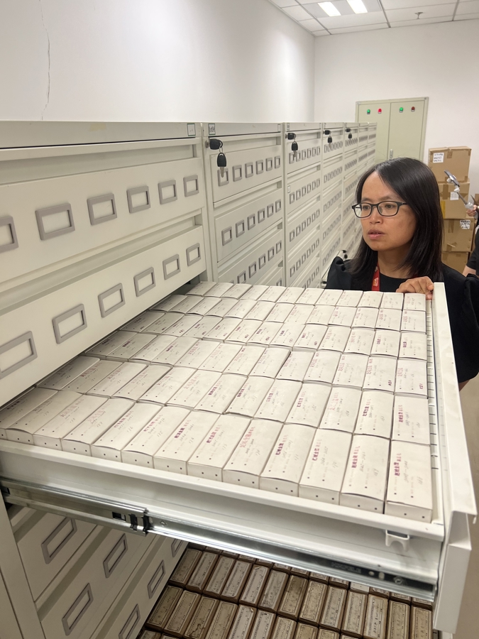 在缩微中心的恒温恒湿库房,记者看到由成百上千个存放缩微胶片的抽屉所组成的一面面巨型柜子。每个抽屉上都标明存放的文献名称,放眼望去,犹如无数个“时光抽屉”,记录着这项事业的成长轨迹。截至2024年底,缩微母片库共藏有包括善本、古籍、报纸、民国书、期刊、建国初图书等多种类型在内的缩微文献母片22万种、12.8万卷。