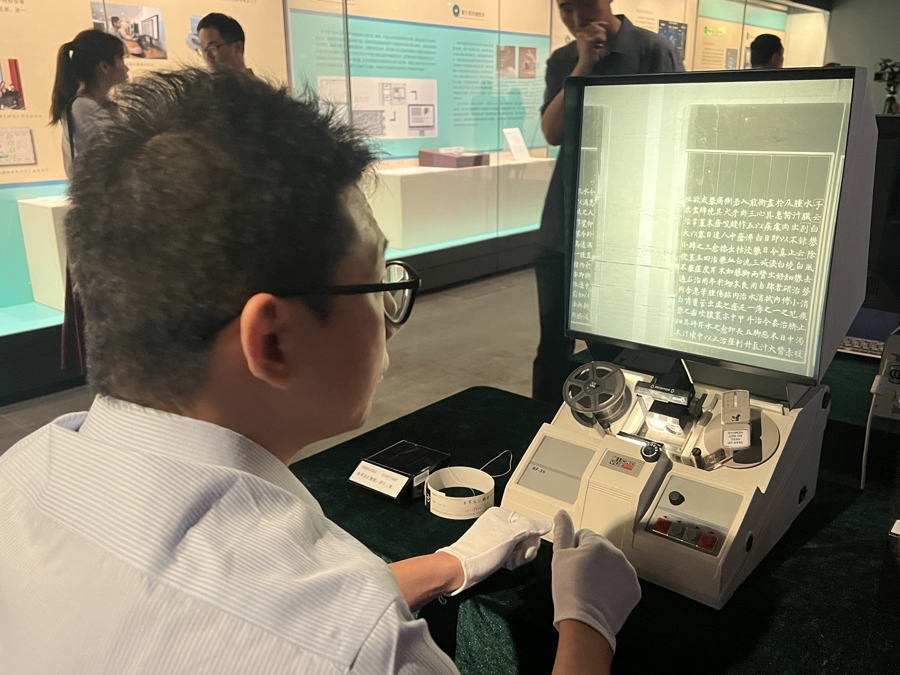 展览特别设置的“胶片阅览区”吸引了大量观众,人们可通过缩微设备直观感受缩微胶片的真实细节,走进小小胶片所展示的浩瀚文献中,亲身体验这项被誉为“人类文明火种库”的精微技艺。