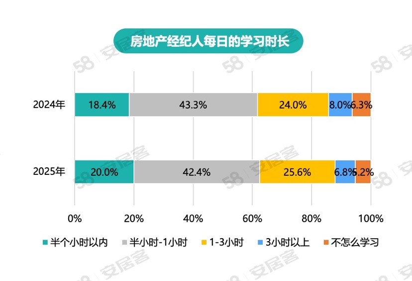 东方网记者柏可林7月1日报道:近日,58同城、安居客发布《2025年百万房产经纪人生存报告》,通过对房地产经纪人和购房者的广泛调研,多维度呈现了房产经纪人的职业现状。 报告显示,经纪人群体呈现年轻化、高学历趋势,大专及以上学历占比过半,同时女性经纪人的比例持续攀升;房产经纪人积极自我提升,整体使用AI工具占比超五成,且超7成经纪人每天学习超半小时,以专业服务和创新思维迎接挑战。