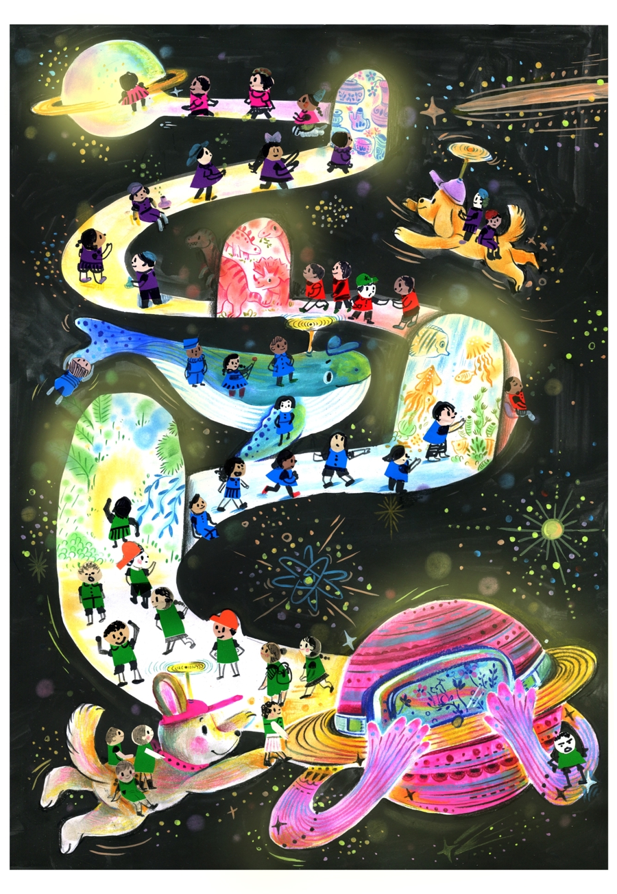 大赛还吸引法国、日本等世界各国的儿童投稿作品,呈现不同国家的文化特点和地域特色。中国美术家协会会员、上海市美术家协会理事施晓劼表示,不同国家的孩子有截然不同的文化表达习惯和绘画风格,跨地域的交流能提升孩子对于不同文化的理解,开阔艺术眼界,更能通过这次难得的展示机会,让世界看到中国的未来。