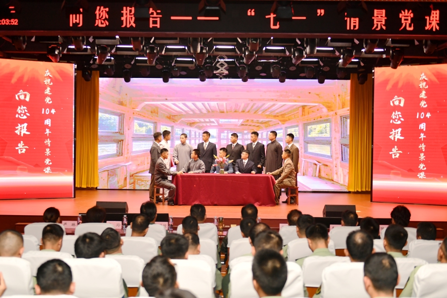 今年是中国人民抗日战争胜利暨世界反法西斯战争胜利80周年。7月1日,一场特殊的主题党课活动在上海武警某支队举行。青年武警官兵以“向您报告”七一主题党日活动为主题,沉浸式演绎党史、国史故事,和他们一起登上舞台的还有上影演员剧团的老艺术家们。当天,上影演员剧团党支部组织党员走进上海武警部队军营,与战士们近距离互动。参与演出的剧团演员崔杰、严永瑄、马冠英等人既是老兵,也是有着几十年党龄的老党员,对他们来说,回军营参与这样的活动倍感亲切,也义不容辞。