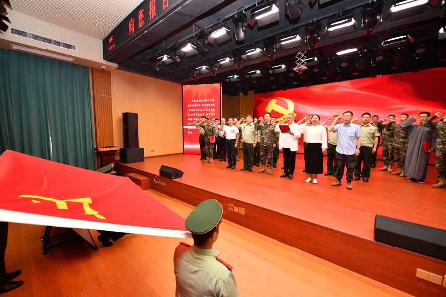 在现场,上影演员剧团海军出身的严永瑄诵读了革命烈士赵一曼写给孩子宁儿的信:“我最亲爱的孩子啊!母亲不用千言万语来教育你,就用实行来教育你。在你长大成人之后,希望你不要忘记你的母亲是为国而牺牲的。”饱含深情的诵读深深感染了现场官兵。活动最后,战士中的共产党员和剧团的党员们,共同面向党旗庄严宣誓。