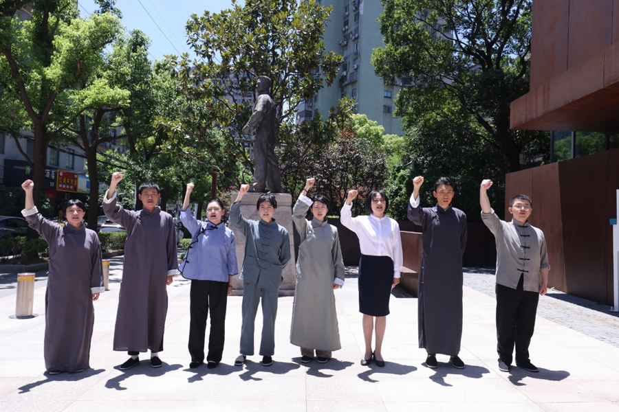 首演现场掌声不断,最后的场内外联动呐喊更是将现场气氛推向高潮,大学生们以高度的责任感和使命感,通过生动细腻、富有感染力的演绎,精准还原了顾正红烈士英勇斗争的场景,充分展现了革命先辈的崇高精神,赢得了市民游客们的赞扬。他们感慨,沉浸式导览剧让历史“活”了起来,“火”了起来,为感悟历史的力量提供了“现场教学”。
