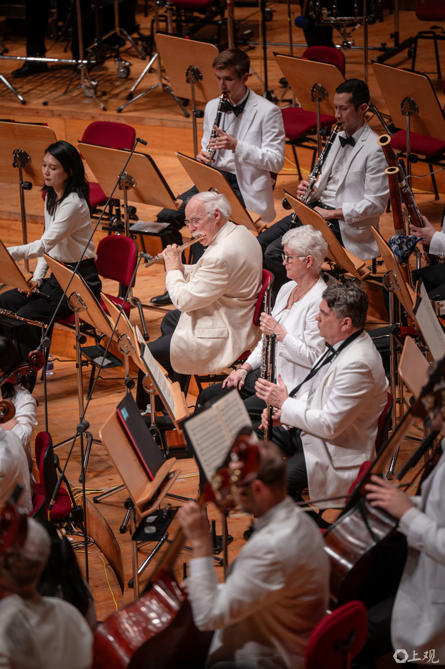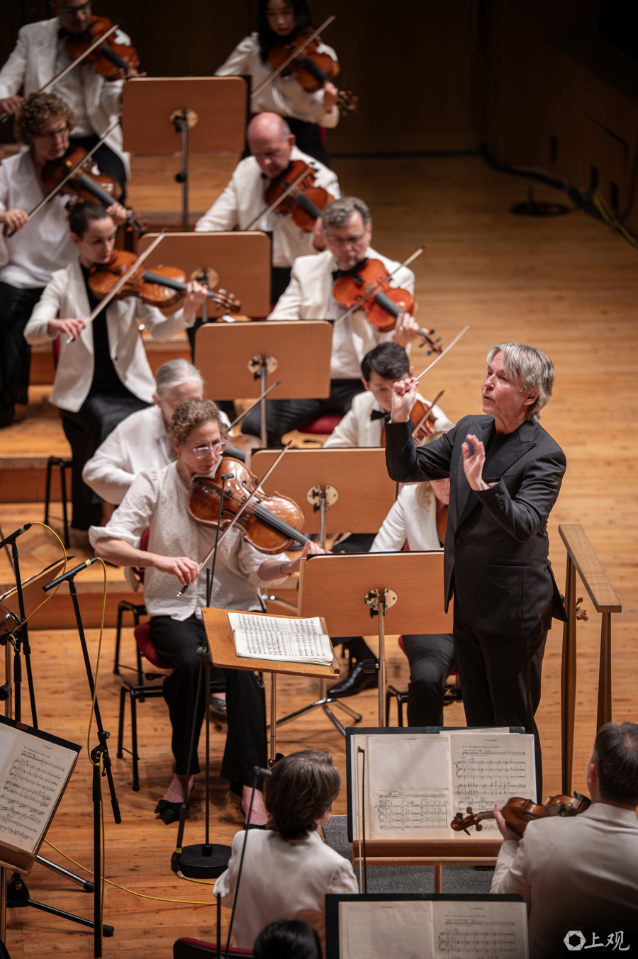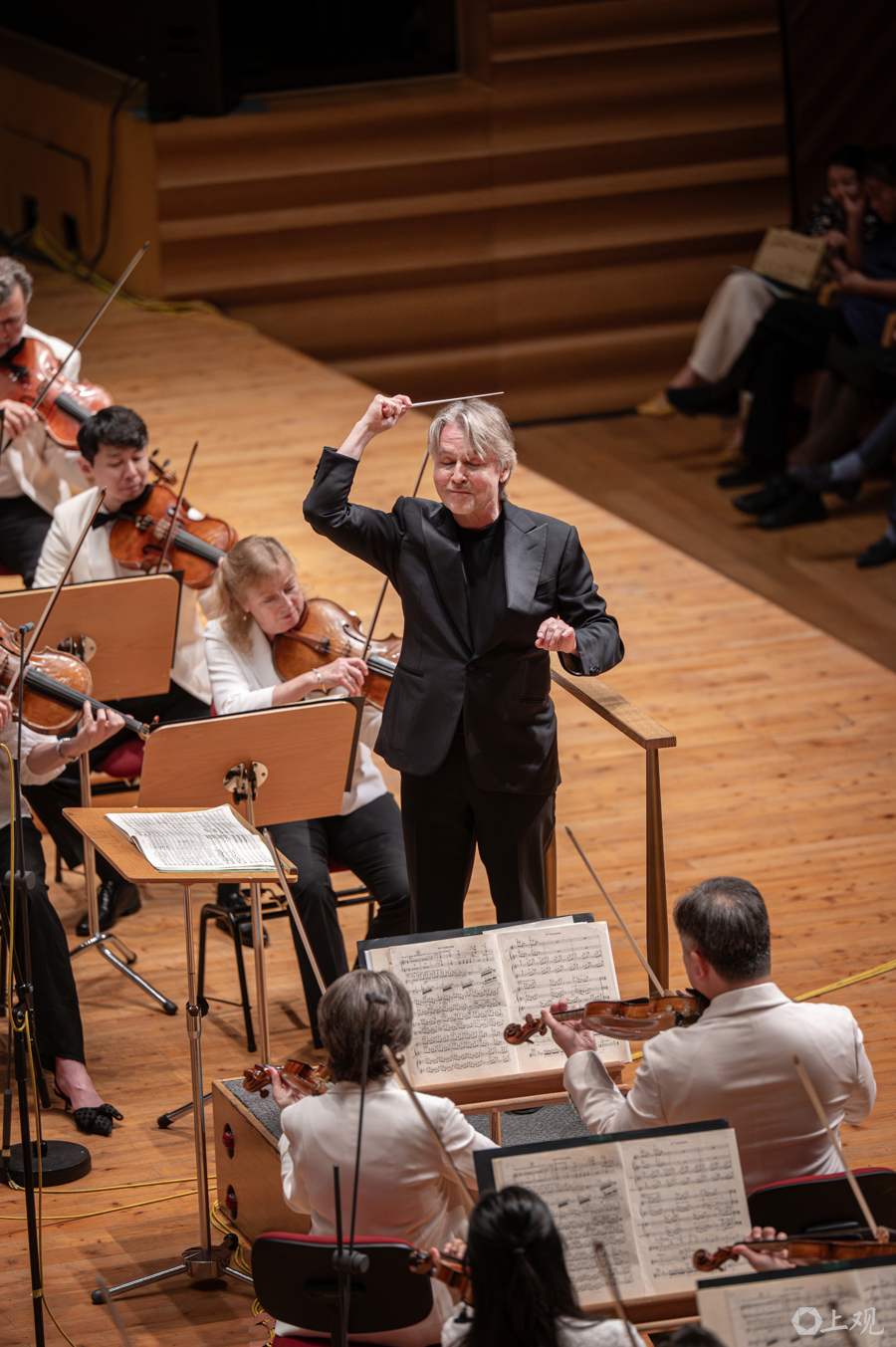 紧接着,德彪西的《大海》在乐团的精彩演绎下,呈现出波澜壮阔的音画。萨洛宁对作品的深刻理解和独特诠释使乐团的演奏充满了生命力。从平静的海面到汹涌的波涛,从柔和的光影到磅礴的气势,音乐的每一个细节都被完美雕琢,观众仿佛亲眼目睹了大海的变幻无穷,深刻感受到了德彪西音乐中对自然的敬畏与赞美。