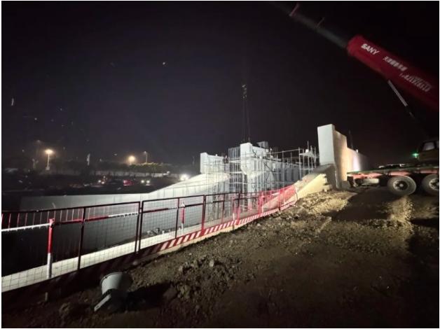 吊装施工阶段,项目管理团队全天候值守、全过程把控,紧盯施工进度与质量,严格遵循工序规范操作,确保各施工环节紧密衔接、有条不紊地推进,实现项目高质高效建造,助力渡汛安全,展现中建担当。
