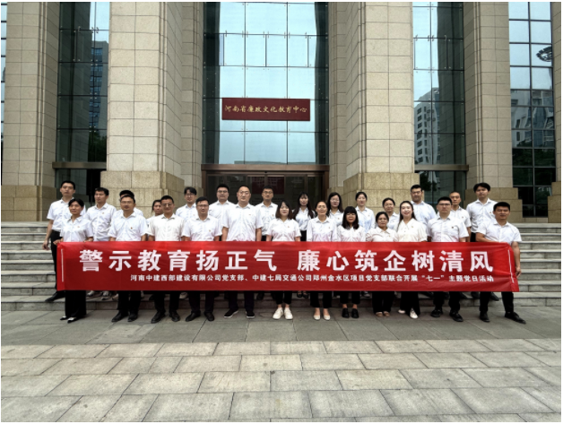 为进一步强化党员、团员的廉洁自律意识,增强拒腐防变能力,6月26日,中建七局交通公司郑州金水区项目党支部、河南中建西部建设有限公司党支部全体党员、团员共计30余人前往河南廉政文化教育馆开展“迎七一·守初心·筑廉心”主题活动,通过沉浸式廉政教育为党员干部敲响廉洁警钟,筑牢拒腐防变思想防线。