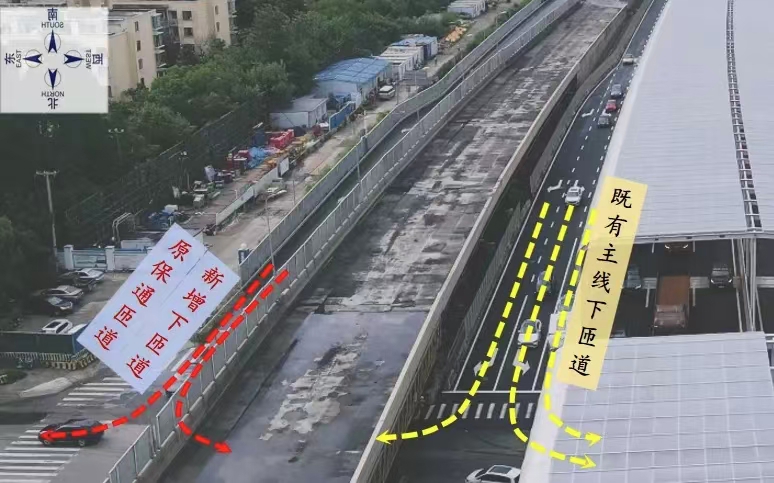 为缓解S4主线(银都路-春申路)市区方向拥堵,在原保通道路(银都路-春申路)市区方向最右侧开辟一根车道,供短途跨越春申塘通行需求车辆使用;