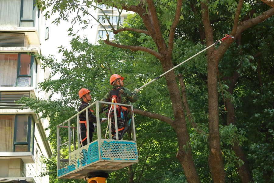 整个治理过程力求精准科学:前期由专业团队踏勘现场,细致研判需修剪的影响采光或存在安全隐患的枝条;随后解读树木修剪示意图并制定方案。方案确定后提前公示,广泛征集居民意见;同时依托“党员楼组长包干摸排-专业部门现场认定-网格党建联席会议平台协商”的共治流程凝聚共识,确保每个环节公开透明、规范有序。“最终,我们仅用2天就完成了28棵超高层树木的回缩修剪,居民们纷纷拍手称赞。”四和花园居民区党总支书记刘桦在现场分享道。