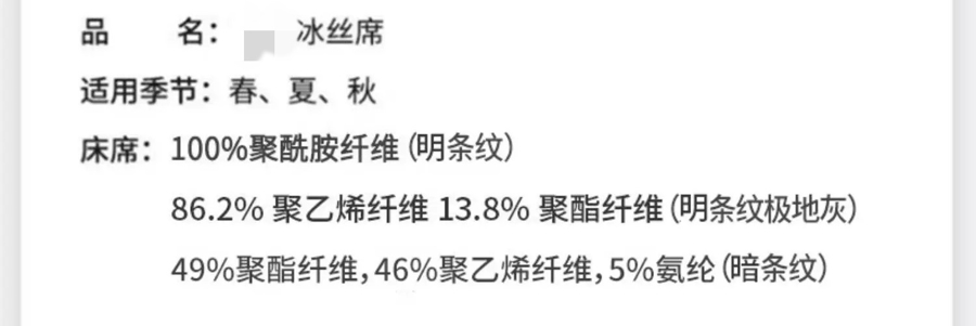 所以,面对五花八门的凉席名称,消费者一定要仔细查看产品标签,确认成分,切勿被华丽的名称所迷惑。