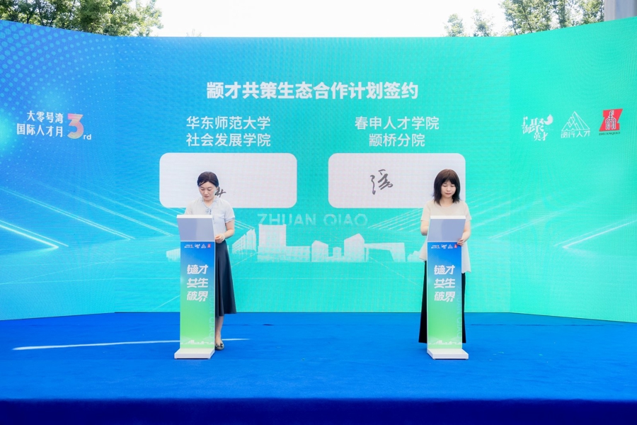 作为全国首个设立“人才学”交叉学科的高校,华东师范大学社会发展学院与春申人才学院颛桥分院今天正式签约启动“颛才共策”生态合作计划。该计划通过校地合作,将加快“政策人才”赋能“人才政策”的良性循环。今后,来自华东师大的“人才学博士生志愿服务团”,将走进颛桥的园区和企业,带来精准前沿的政策解读和智力支持。