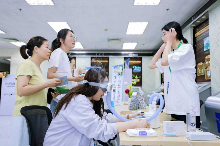 面对“久坐族”“屏幕党”等年轻职场人群,传统说教式科普常常“水土不服”,闵行推出健康+科技+艺术”的跨界融合新模式——健康慢游展,精准锁定职场人常见的颈椎腰椎问题、心血管风险、干眼视疲劳及睡眠障碍等痛点,通过AR互动、充满巧思的趣味装置、沉浸式多重感官体验,将抽象知识转化为直观、可感、可玩的探索旅程。职工们在主动探索、动手操作、亲身体验中,轻松觉察自身健康隐患,完成从“自检”到“认知”再到“行动改善”的闭环升级。亲手调配养生茶饮、DIY专属助眠舒压香薰......更是让实用的生活调养技巧变得触手可及,收获一致好评。